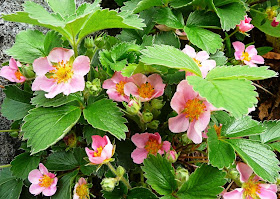 This is Fragaria, or Wild Strawberry. I have it as a ground cover. It makes edible strawberries, but they are very tiny.